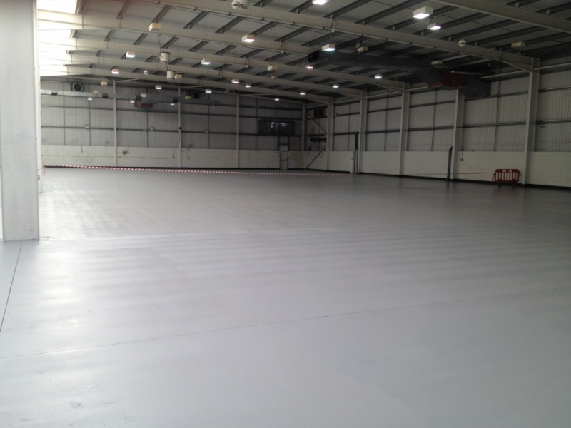 The product proposed was a light grey 2 coat water based epoxy resin flooring system due to cost and installation speed for such a large area. The product would seal the floor and prevent any future dusting of the existing concrete.